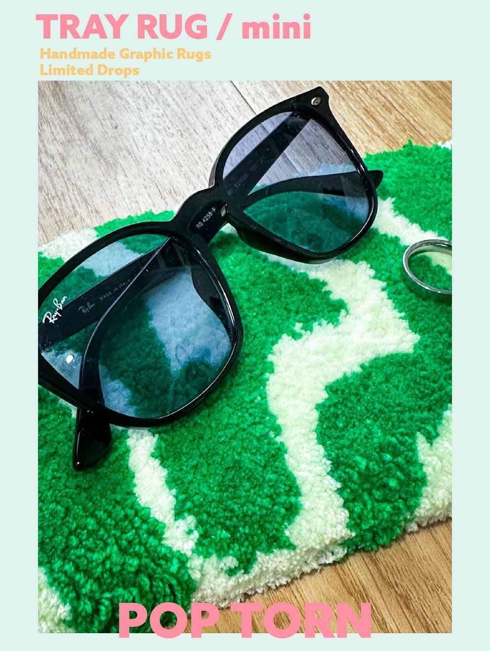 • 用途: サングラスやアクセサリー、お気に入りの小物を置くための「トレイラグ」として最適。置くものをより魅力的に引き立てるグラフィックデザインです。